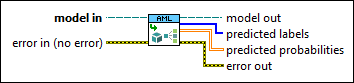 predicted probabilities returns the predicted probability for each class. If you specify different weights for the SVM model using weighted c in the Initialize Classification Model (SVM) VI, this VI does not return predicted probabilities. |