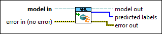 model out returns the information about the entire workflow of the model. Wire model out to the reference input of a standard Property Node to get an AML Analytics Property Node. |