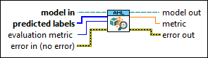 model out returns the information about the entire workflow of the model. Wire model out to the reference input of a standard Property Node to get an AML Analytics Property Node. | ||||||||||||