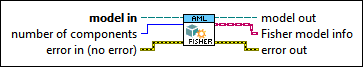 Fisher model info returns the information of the Fisher's linear discriminant model. Wire Fisher model info to the reference input of a standard Property Node to get an AML Fisher Property Node. |