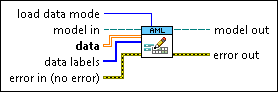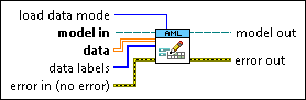 model out returns the information about the entire workflow of the model. Wire model out to the reference input of a standard Property Node to get an AML Analytics Property Node. | ||||