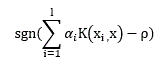 one-class SVM model specifies the properties of the one-class SVM model. The following equation defines the one-class SVM model decision function: