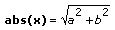 abs(x) is the absolute value of x. When x is of the form x = a + bi, that is, when x is complex, the following equation defines abs(x):