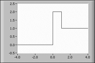 step(x) = 0 if x < 0 and 1 elsewhereNote You can define more complex functions by varying and combining the Step Function, Spike Function, and Square Function VIs, respectively.
