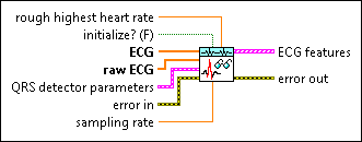 ECG specifies the input ECG signal. ECG can be a raw signal or a preprocessed signal. This VI uses ECG only for detecting QRS waves. | ||||||||||||||||||||||||||||||||||