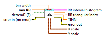 detrend? specifies whether to detrend the raw RR intervals. The default is FALSE. If you set detrend? to TRUE, this VI calculates RR triangular index and TINN by using the detrended RR intervals. | ||||||||||