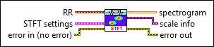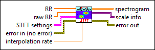 Refer to the HRV Analyzer VI in the labview\examples\Biomedical\Biosignal directory for an example of using the HRV STFT Spectrogram VI.