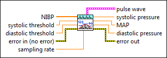 pulse wave returns the pulse wave and the envelope of the pulse wave that this VI extracts from the NIBP signal. pulse wave indicates the position of the systolic pressure, MAP, and diastolic pressure. |