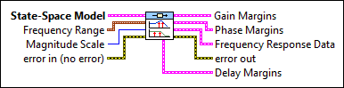 State-Space Model contains a mathematical representation of and information about the system for which this VI determines gain and phase margins. | ||||||||||||