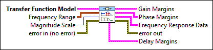 Transfer Function Model contains a mathematical representation of and information about the system for which this VI determines gain and phase margins. | ||||||||||||