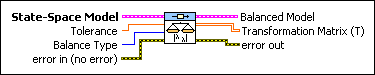 Transformation Matrix (T) returns the matrix T that this VI uses to transform the system. The calculation of T is based on LAPACK balance routine. | ||||||