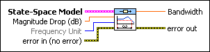 State-Space Model contains a mathematical representation of and information about the system for which this VI determines bandwidth. | ||||