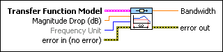 Transfer Function Model contains a mathematical representation of and information about the system for which this VI determines bandwidth. | ||||