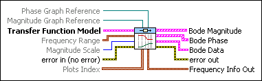 Transfer Function Model contains a mathematical representation of and information about the system of which this VI produces Bode plots. | ||||||||||||||||||||||||||