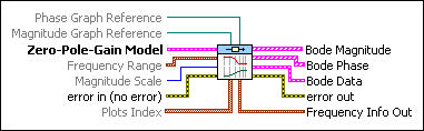 Zero-Pole-Gain Model contains a mathematical representation of and information about the system of which this VI produces Bode plots. | ||||||||||||||||||||||||||