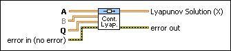 Lyapunov Solution (X) returns the solution to the Lyapunov equation. |