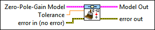 Zero-Pole-Gain Model contains a mathematical representation of and information about the system on which this VI operates. |