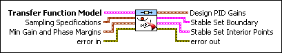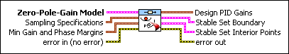 Min Gain and Phase Margins specifies the optional performance constraints on the PID controller model. If you specify a value of 0 for either of these constraints, this VI does not attempt to verify that constraint. If you specify nonzero a value for either parameter, this VI returns PID gain values that satisfy the performance constraint(s).