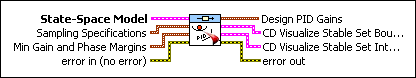 State-Space Model specifies a state-space representation of the controller model for which this VI calculates the PID gains. | ||||||