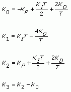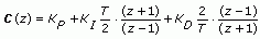 - C(z) is a PID controller with proportional gain KP, integral gain KI, and derivative gain KD. To search for these values, this VI transforms KP, KI, and KD into K1, K2, and K3 by using the following equations: