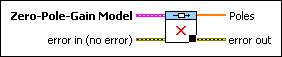 Zero-Pole-Gain Model contains a mathematical representation of and information about the system for which this VI returns the poles. |
