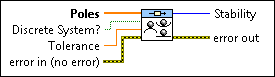 Poles returns the poles, which this VI uses to determine the type of Stability, of the input system. | ||||||||