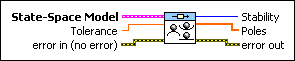 State-Space Model contains a mathematical representation of and information about the system of which this VI determines stability. | ||||||||