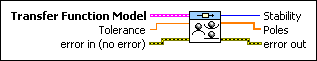 Transfer Function Model contains a mathematical representation of and information about the system of which this VI determines stability. | ||||||||