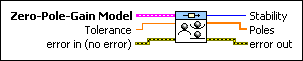 Zero-Pole-Gain Model contains a mathematical representation of and information about the system of which this VI determines stability. | ||||||||
