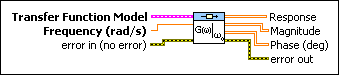 Transfer Function Model contains a mathematical representation of and information about the system for which this VI determines frequency response. |