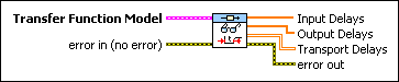 Transfer Function Model contains a mathematical representation of and additional model information about the system for which this VI obtains time delays. |