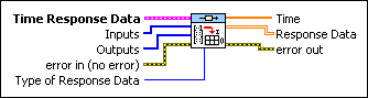 The Time is an array of timestamps this VI records at a certain interval. The Outputs Data is a three-dimensional array with three index displays. The first index display is the index number of the inputs. The third index display is the index number of the outputs. The data that Outputs Data displays is based on the input-output pair these two index displays specify. The second index display is the index number of the response data. This index display is relative to the index display of the Time. The indexes are zero-based.