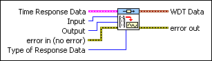 WDT Data returns the time response data for the input-output pair you select. This VI starts the time response Y at time t0 and evaluates it at a sample time dt. | ||||||