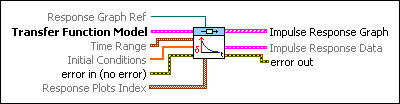 Response Graph Ref is a reference to the Impulse Response graph. Response Graph Ref configures the x-scale, y-scale, and legend properties. If you want to use the default settings or customize the settings for these properties, do not wire a value to this input.