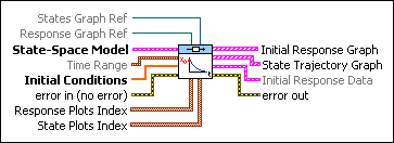 State Trajectory Graph is an XY graph that shows the value of each state as a function of time. This VI computes the magnitude by solving the first order difference equation of the system.