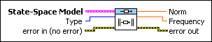 State-Space Model contains a mathematical representation of and information about the system of which this VI determines the norm. | ||||