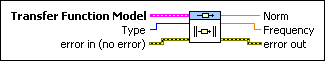 Transfer Function Model contains a mathematical representation of and information about the system of which this VI determines the norm. | ||||
