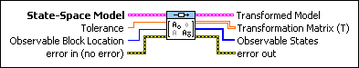 State-Space Model contains a mathematical representation of and information about the system for which this VI determines staircase transformation. | ||||