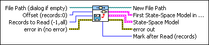 State-Space Model returns all the models in the file if Records to Read is –1. To access and modify the data in the model, use the Model Information VIs. |