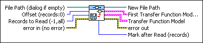Transfer Function Model returns all the models in the file if Records to Read is –1. To access and modify the data in the model, use the Model Information VIs. |