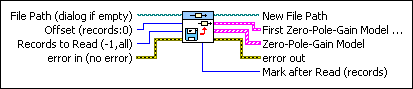 Zero-Pole-Gain Model returns all the models in the file if Records to Read is –1. To access and modify the data in the model, use the Model Information VIs. |
