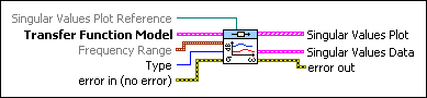 Transfer Function Model contains a mathematical representation of and information about the system for which this VI determines the frequency response singular values. | ||||||||||||