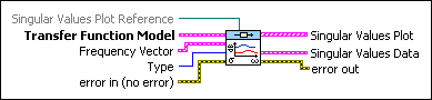 Singular Values Plot Reference is a reference to the Singular Values Plot. Singular Values Plot Reference configures the x-scale, y-scale, and legend properties. If you want to use the default settings or customize the settings for these properties, do not wire a value to this input. | ||||||||||||