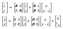 A matrix estimator gain indicates that the system is a multiple-output model. Refer to the LabVIEW Control Design User Manual for more information about building state estimators. A general system configuration for the state estimator is one where this VI appends the original model states (x) to the estimation model states (