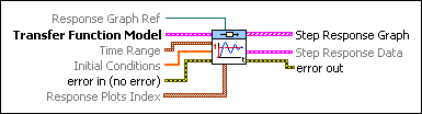 Response Graph Ref is a reference to the Step Response graph. Response Graph Ref configures the x-scale, y-scale, and legend properties. If you want to use the default settings or customize the settings for these properties, do not wire a value to this input.