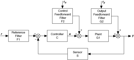 Ry specifies information about the input signal that this VI combines with output from the plant G1. This input signal passes through the output feedforward filter G2. Refer to the Details section for the information about how this signal applies to the dynamic system model.