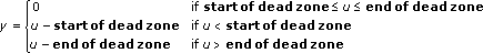 Implements a dead zone function. For example, this function represents a forward-based diode in which you must apply a small forward voltage drop before current begins to flow. You specify the width of the dead zone using the start of dead zone and end of dead zone parameters.
