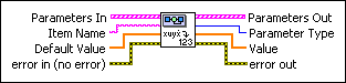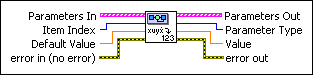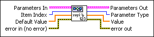 Default Value specifies the Value this VI returns if the parameter you specify is not in the Parameters In array. The default value is NaN. The data type you wire to this parameter determines the polymorphic instance to use. If you leave this parameter unwired, you must manually select the polymorphic instance to use.