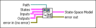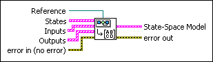 State-Space Model returns the LTI state-space form of the given simulation subsystem. This model is compatible with the Control Design VIs and functions. | ||||||||||||