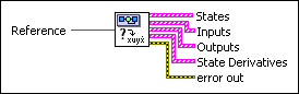 State Derivatives returns the derivatives of the states of the simulation subsystem. By default, State Derivatives contains all zeros of type Fixed, which indicates that the SIM Trim VI attempts to satisfy a steady-state condition.